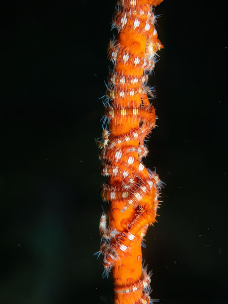 These variable brittlestars are usually found wrapped around gorgonians, soft corals or sponges, sometimes in large numbers.