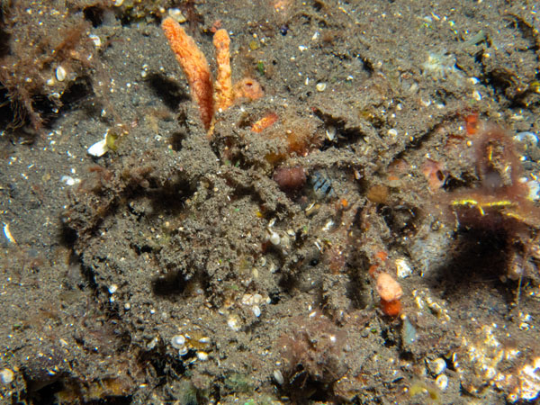 This pair of well camouflaged crabs could belong to the family Inachidae. They were on sand and rubble at Tianyar.