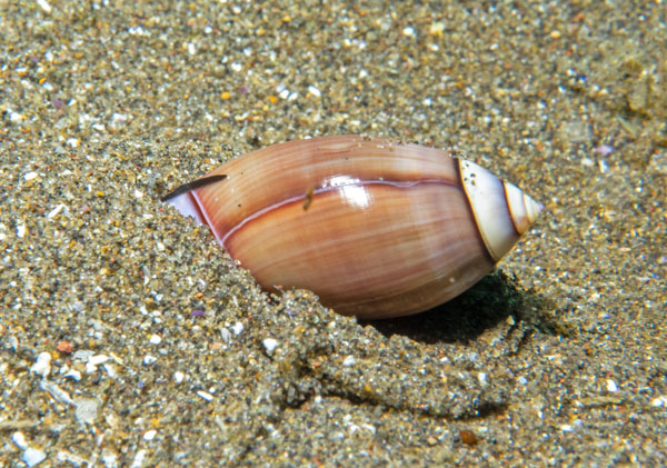 These small olive shells are common in sand.
