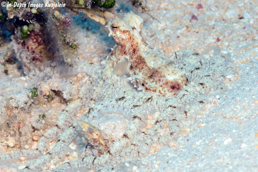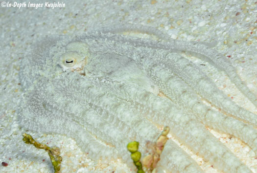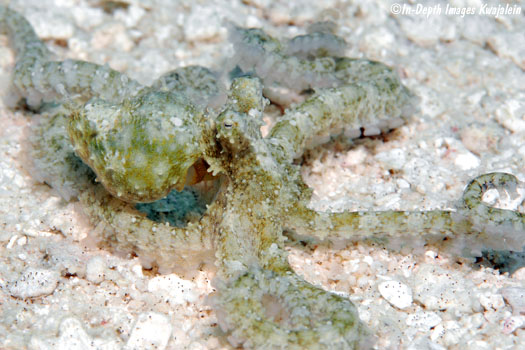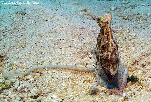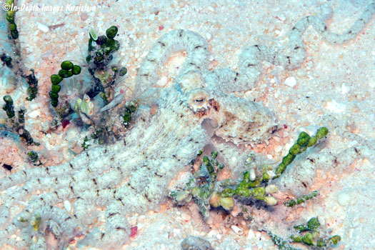 These appear to be Abdopus abaculus, one of the long-armed octopus. They were most often observed in sandy areas and algae patches on lagoon reefs, but could also be found in sand channels on the seaward reef.