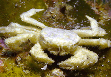Measurements were not taken in the field and animals were not collected, so any sizes given are very rough eyeball estimates often based on distant memories, and are provided only as a general guideline of what to look for. Unless otherwise noted, our crab measurements are estimated widths of the carapace, not including the appendages, which may be much longer. The thumbnails below link to pages with additional, larger photographs.