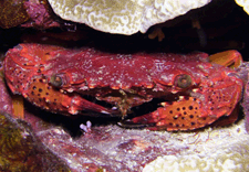 This page links to photos of Brachyuran crabs we have seen in the Marshall Islands. Many of our species remain unidentified and many names we do have are uncertain. Much of crab taxonomy depends upon close examination of the numerous appendages, something that is not easily done through in situ photographs of the living animal. We welcome corrections or suggestions at uwkwaj@yahoo.com. The Brachyurans constitute the larger of the two main groups of crabs at Kwajalein. The other group. the Anomurans, consisting of hermit crabs, porcelain crabs and squat lobsters, are covered elsewhere on this site. Like the Anomurans, we show only a sampling of the Brachyuran species found in the Marshalls. A checklist of crabs from Enewetak Atoll based on multiple collections over the years is presented by Garth et al (1987) and records some 291 species, which is considerably more than we cover here. No doubt there are many more to be found even beyond the Enewetak checklist.