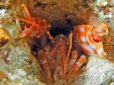 This page links to shrimp we have photographed in the Marshall Islands. This is by no means complete coverage of Marshall Islands shrimp. We did not specifically seek out shrimp, but simply photographed those we ran across if it was convenient. In addition, the identifications are often not certain. We have made a few guesses on genera and families of some of our unknowns, but no doubt there are many errors and the names should not be taken as certain. We welcome corrections at uwkwaj@yahoo.com.